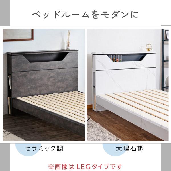 ベッド ベッドフレーム ボックスタイプ 大理石調 セラミック調 NERO ネロ コンセント付 引き出し 収納 すのこ ベッド フレーム シングル S LEDライト 棚付き