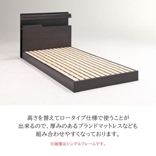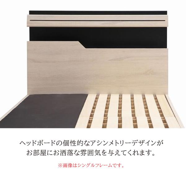 シングル ベッドフレームのみ シアトル レッグタイプ 脚付き 棚付き 収納 宮付き キャビネット コンセント LEDライト スノコ おしゃれ アシンメトリー モダン
