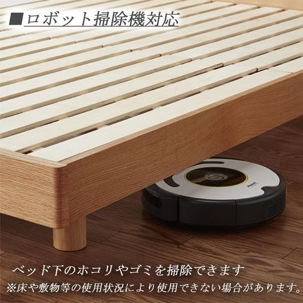シングル ベッドフレーム 天然木 無垢 オーク材 ウォールナット 宮付き コンセント付 ロマン ロボット掃除機 すのこ 通気性 ナチュラル おしゃれ 棚 北欧 脚付き