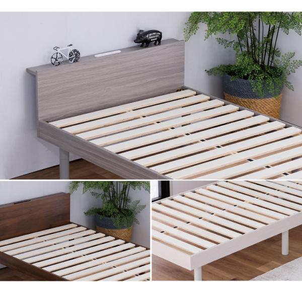 すのこベッド シングル ベッドフレーム ハイ ロータイプ コンセント 高さ3段階 ロー 調節 スペース 宮棚 木製 ベット 北欧 モダン
