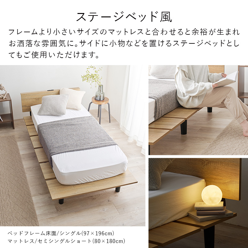 ベッド ベッドフレーム シングル 収納 すのこベッド 高さ調節 シングルベッド すのこ 木製 おしゃれ 安い コンセント付き ローベッド ベット 耐荷重200kg