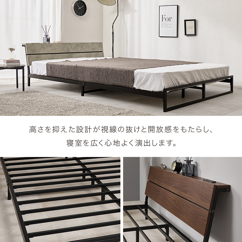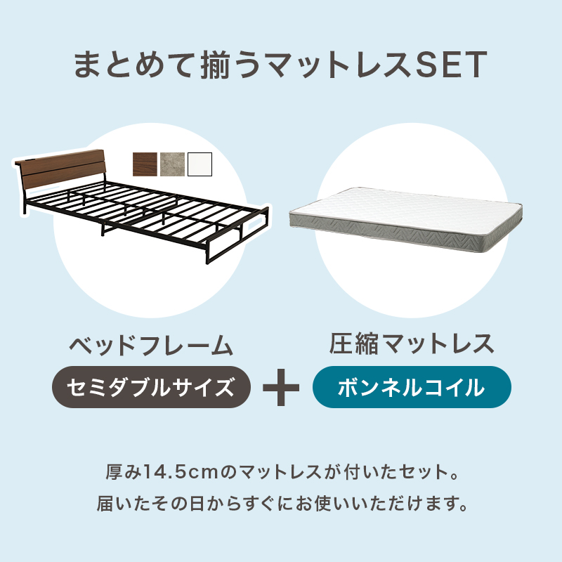 ベッド ベッドフレーム マットレス付き セミダブル 収納 パイプベッド セミダブルベッド 安い 宮付き コンセント付 ボンネルコイル 耐荷重300kg ロータイプ 頑丈
