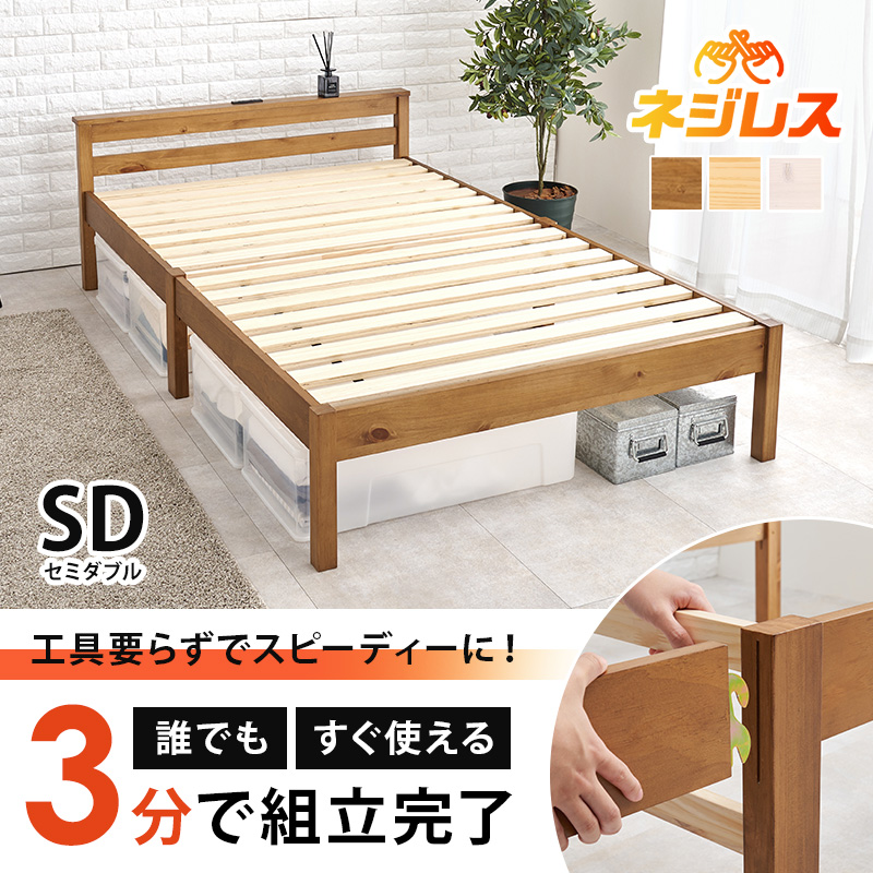 ベッド ベッドフレーム セミダブル 収納 すのこベッド 宮付き コンセント付き すのこ 白 ベット 組み立て簡単 工具不要 耐荷重200kg ネジレス