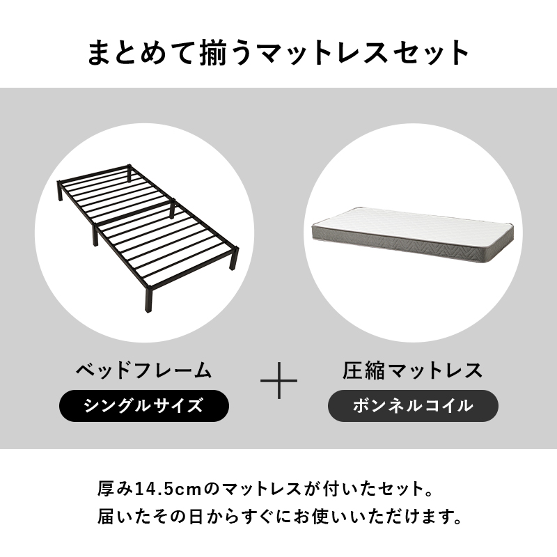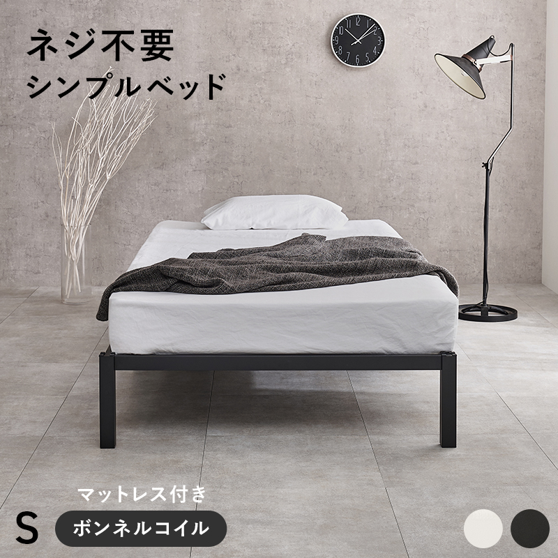 ベッド ベッドフレーム シングル パイプベッド シングルベッド おしゃれ 安い ベット スチール ホワイト 白 ブラック ボンネル セット 黒