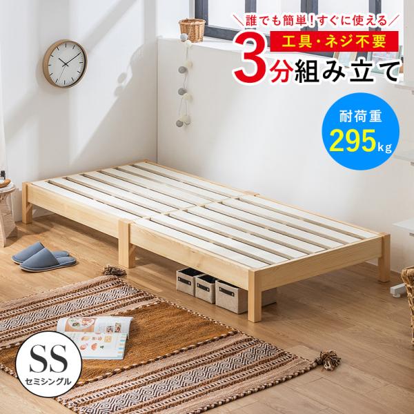 すのこベッド ベッド セミシングル 頑丈 すのこ ベッドフレーム ヘッドレス 工具不要 組み立て 簡単 スノコベッド パイン材 白 ホワイト シンプル 天然木