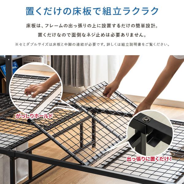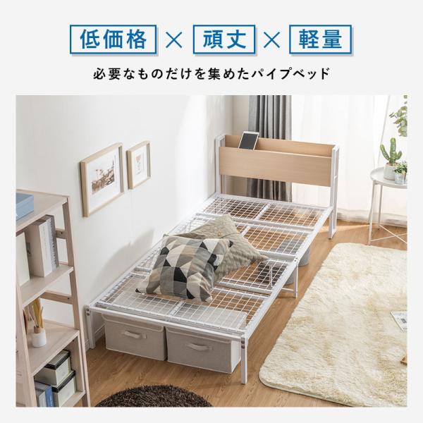 パイプベッド シングル 頑丈 スチールベッド 宮棚付き 宮付き ベッド ベッドフレーム 耐荷重300kg 高耐荷重 おしゃれ シンプル コンセント付き スチール