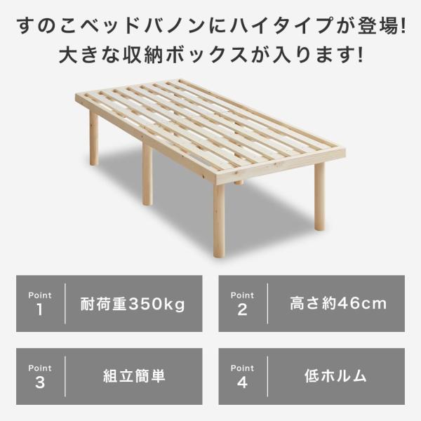 ベッド バノン すのこベッド ハイタイプ セミシングルショート 長さ180cm 木製 ベッドフレーム 耐荷重700kgクリア 組立簡単 低ホルム