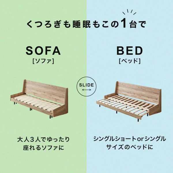 ソファベッド Hardy シングル すのこベッド 木製ベッド 伸長式ソファベッド ベッドフレーム シングルベッド マットレス付き ナチュラル