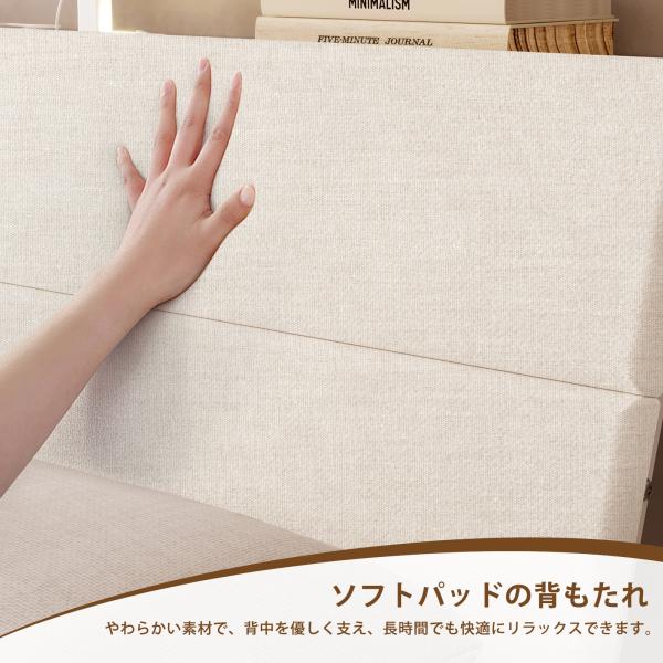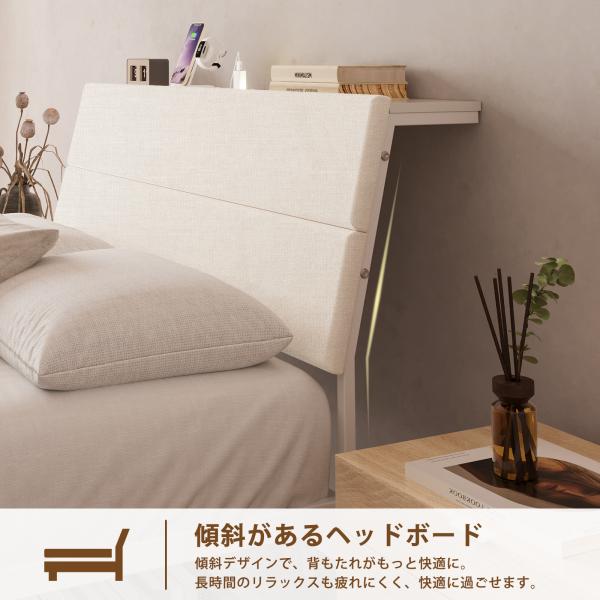 ファブリックベッド セミダブル ソフトパッド付き 傾斜があるヘッドボード 照明&コンセント ソファのような布張りベッドフレーム 広めの多機能宮棚 床下収納