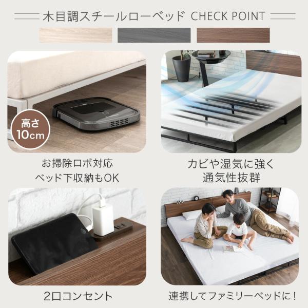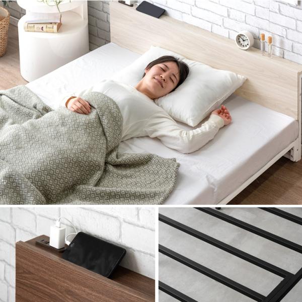ローベッド シングル ベッドフレーム ベッド コンセント 付き シングルベッド フロアベッド 連結 ベット ベットフレーム ローベット スチールベッド