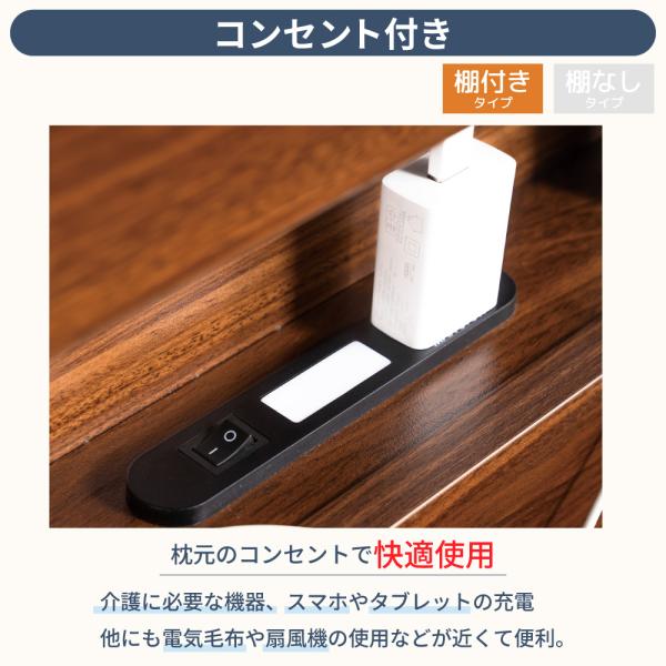 電動ベッド 介護用ベッド 昇降式 3モーター MFB-1603UF キャスターなし 非課税 介護 棚付き 国産ウレタンマットレス LEDライト コンセント付き 高さ調整