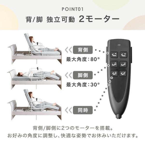 電動ベッド 介護 2モーター シングル マットレス付 ポケットコイル 手すり付き 介護ベッド 宮付き 99900228 超大型 USBポート リクライニングベッド