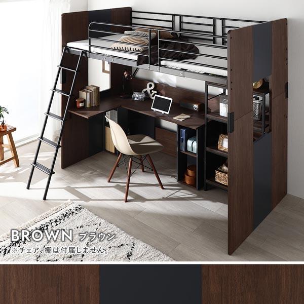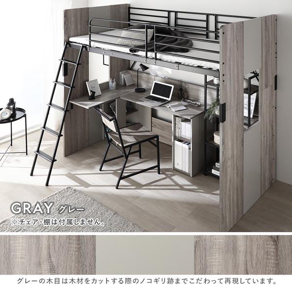 L字 デスク付 ロフトベッド 単品 ベッド 幅104cm シングル ハイタイプ 学習机付 システムベッド 子供ベッド 送料無料
