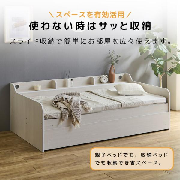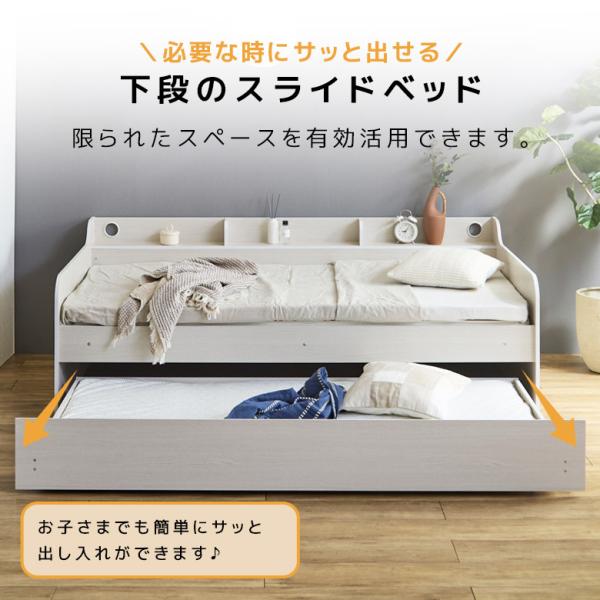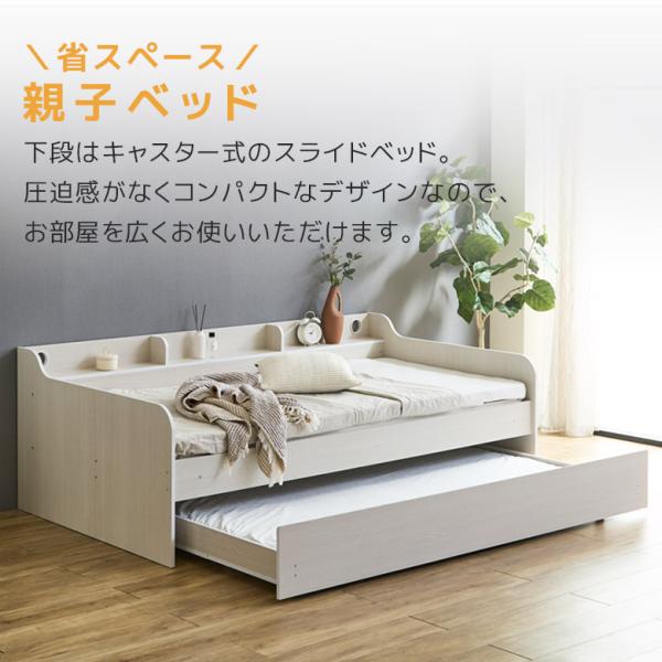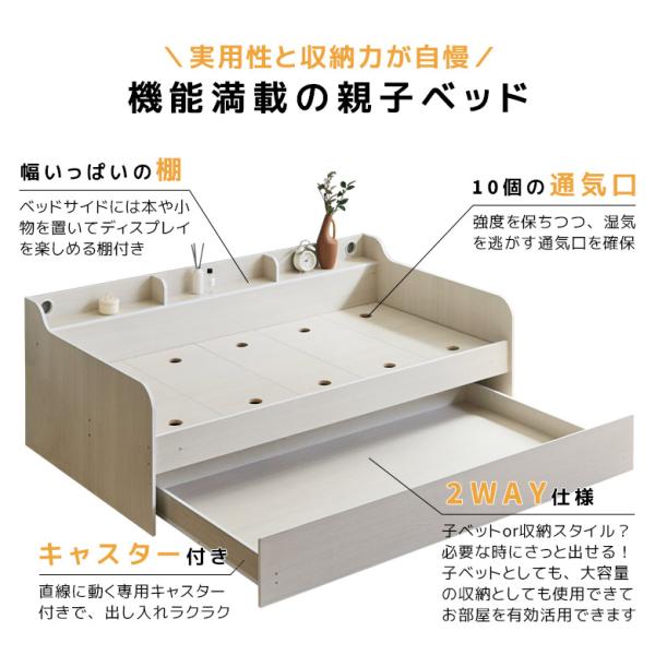 親子ベッド スライド 2段 シングル フレーム 省スペース キャスター付き 収納 棚付き スライド式 2段ベッド 引出収納 ワイド棚 3カラー 収納棚