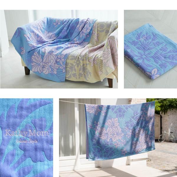 ガーゼケット キャシーマム ハワイアンキルト柄 シングル 3重ガーゼ ホロホロシリーズ ハイビスカス & プルメリア