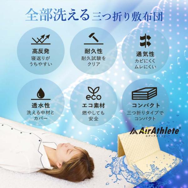 マットレス シングル エアーアスリート 洗える 硬め かため 三つ折り 体圧分散 硬い 敷布団 高反発 日本製 腰痛 通気性 透水性 耐久性 洗える 清潔 薄型 国産