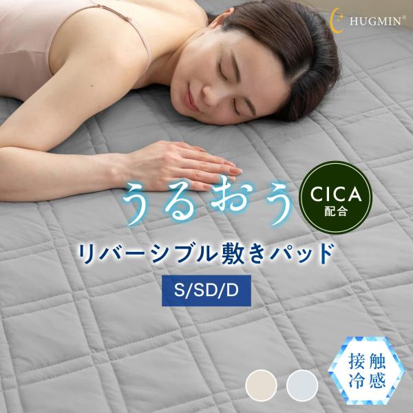 HUGMIN ハグミン CICA 加工 うるおう敷パッド ダブル 約140×205cm なめらかな保湿力 お肌潤う 肌にやさしい 洗える ピーチスキン 接触冷感