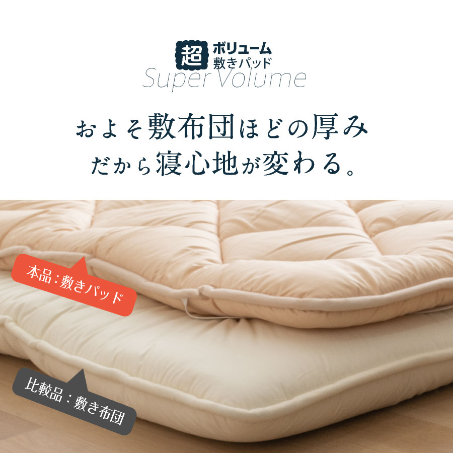 \ふわふわの寝心地に/ 日本製 超ボリューム 敷きパッド 洗える マットレストッパー セミダブル ロング 洗える 制菌 防ダニボリューム