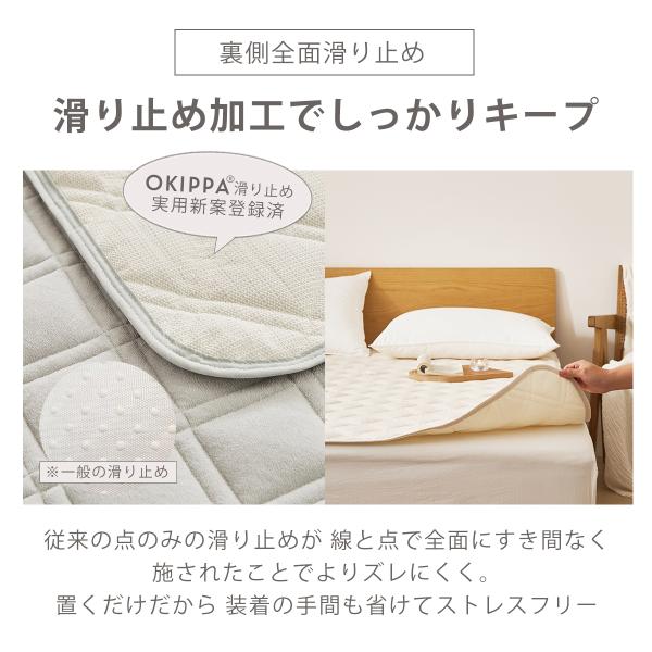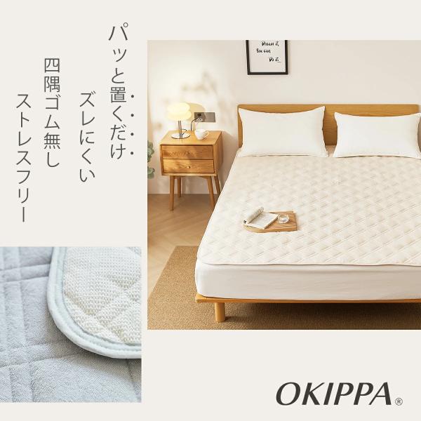 敷きパッド ゴム無し パイル 時短 滑り止め タオル地 シングル 綿100% 100×205 置くだけ オキッパ 簡単 オールシーズン K14101S