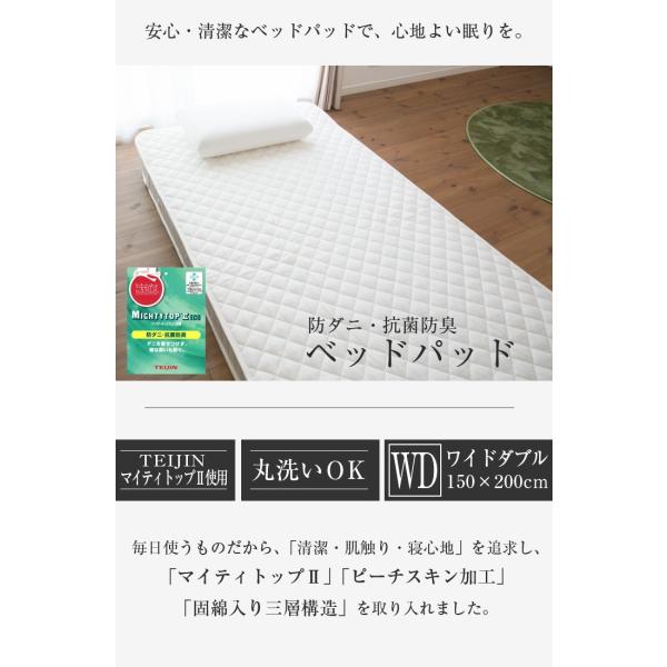 ベッドパッド ワイドダブル 洗える オールシーズン 150×200
