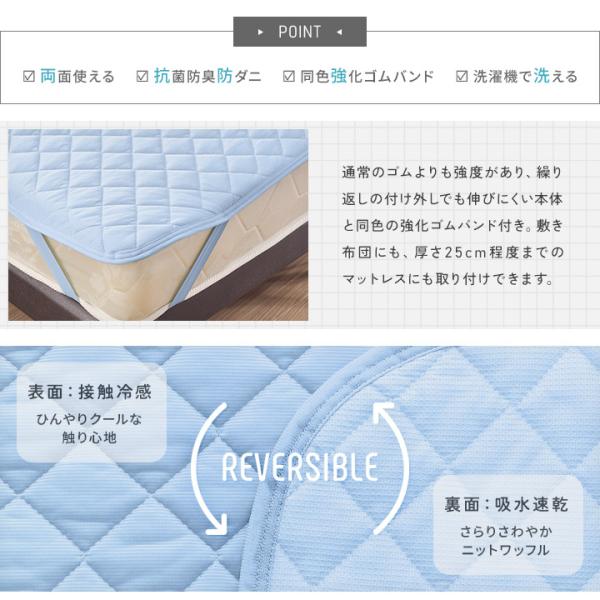 敷きパッド シングル リバーシブル 敷パッド ひんやり接触冷感×さらふわ吸水速乾ワッフル 春 夏 秋