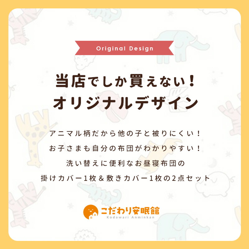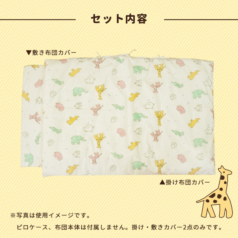 お昼寝布団カバー 2点セット set アニマル柄 3ヶ所ヒモ 紐タイプ お昼寝 掛け布団カバー・敷き布団カバー メール便