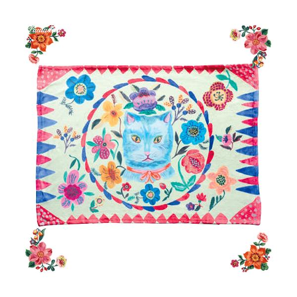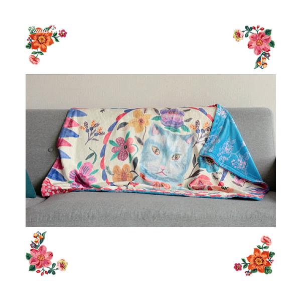 ナタリー・レテ ダブル・レイヤー・ブランケット ブルー・キャット 青猫のふわふわ二層毛布