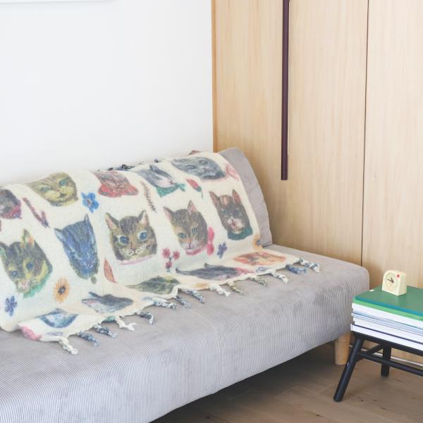 ナタリー・レテ シャギー・ブランケット・ストール ラビッツ ホワイト・グレイ うさぎたちのふわもこ毛布 ペイル・グレー