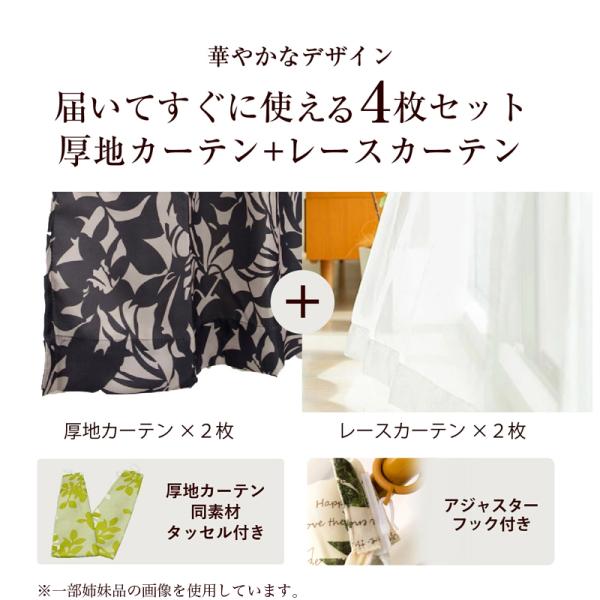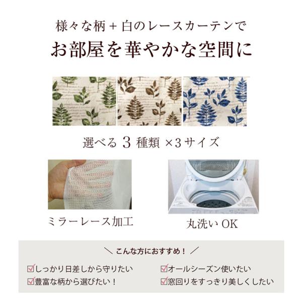 新生活クーポン実施 カーテン レース 4枚セット 洗える お洗濯 100×135 100×178 100×200 かわいい おしゃれ ドレープ リーフ ボタニカル 花柄