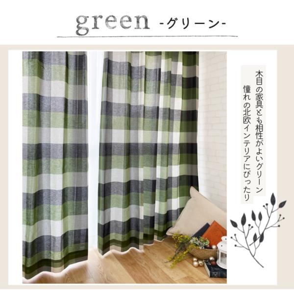 カーテン おしゃれ 北欧 リネン調ナチュラルチェックカーテン 2枚組