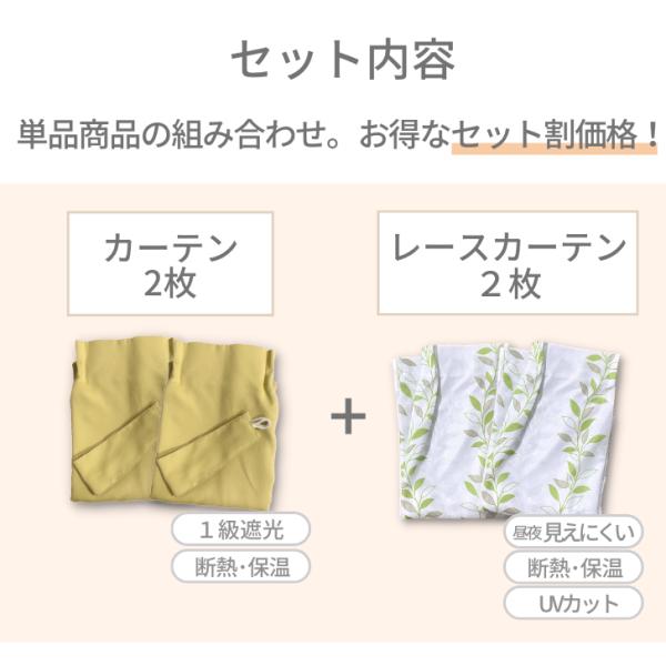 カーテン 4枚セット 遮光 1級 見えにくいレース 1級遮光 おしゃれ 北欧 ソリッド1級遮光カーテン & 遮熱・見えにくいプリントレースカーテン4枚組
