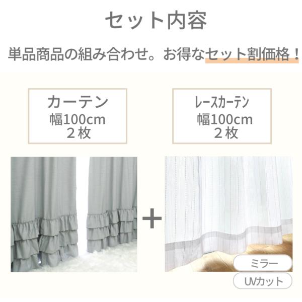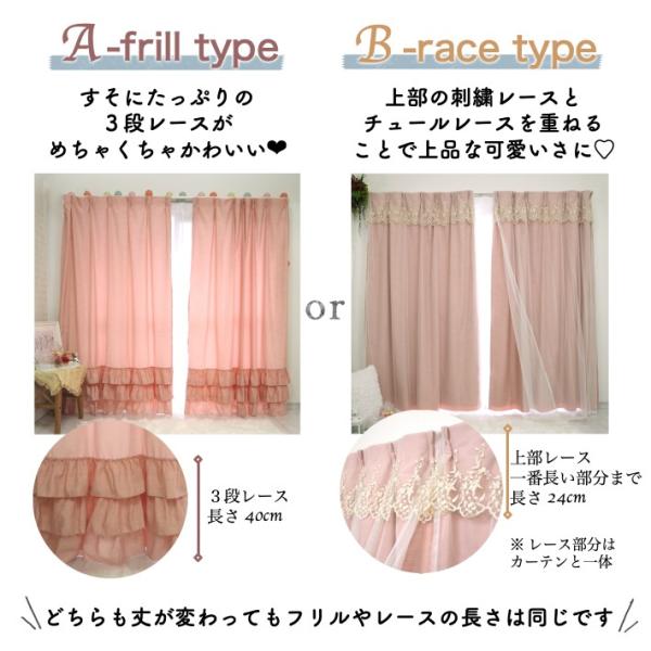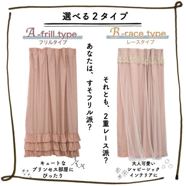 カーテン 遮光4枚組 かわいい フェミニンピンク グレー プリンセス 姫系 可愛い 選べる遮光裏地付きスィートカーテン&レースカーテン 4枚セット