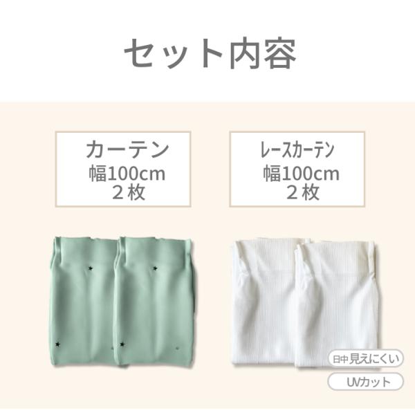 カーテン 4枚セット 遮光 星 星型 透かし 遮光カーテン&UVカット ミラーレース 4枚セット 幅100cm 丈135 丈178 丈200cm かわいい おしゃれ キラキラ 子供部屋