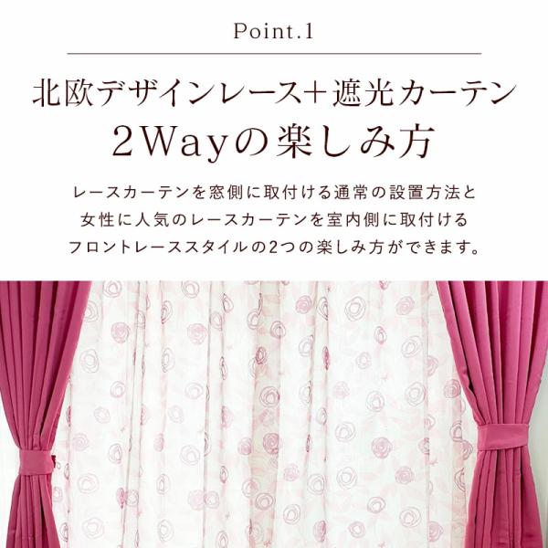 【メーカー直送品】カーテン 4枚セット 遮光 レース 北欧 おすすめ 姫系 おしゃれ かわいい 柄 洗える タッセル付き q47584