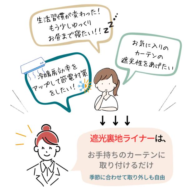 EO-取付簡単遮光裏地ライナー 幅100:2枚組 200cm:1枚 ×丈80~250cm カーテン対応 イージー オーダー