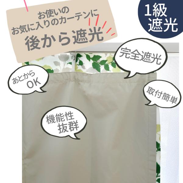 カーテン 遮光 1級遮光 裏地 取付簡単 2枚入 幅100cm×丈105 135 178 200 cmカーテン対応 あとから 遮光裏地 完全遮光