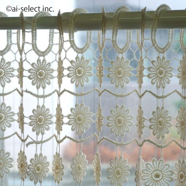 ai カフェカーテン ポスト投函で送料無料 淡い色合い レースが揺れて可愛い 小窓カーテン 幅100×縦20cm 短い 小窓 綺麗 おしゃれ ベリーショート ギュピ