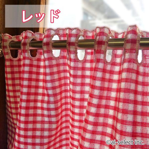 New カフェカーテン ギンガムチェック 約100×25cm ポスト投函で送料無料 ベリーショート カントリー 日本製 棚隠し 小窓 可愛い 目隠し