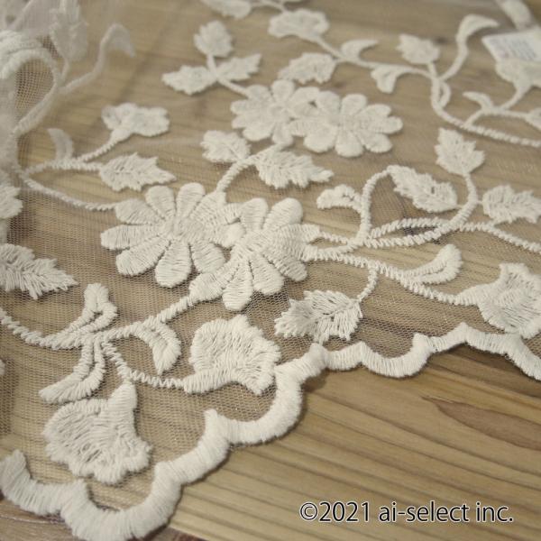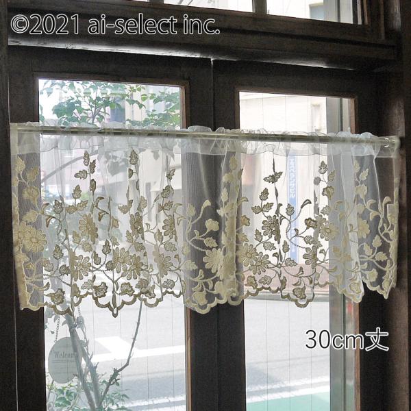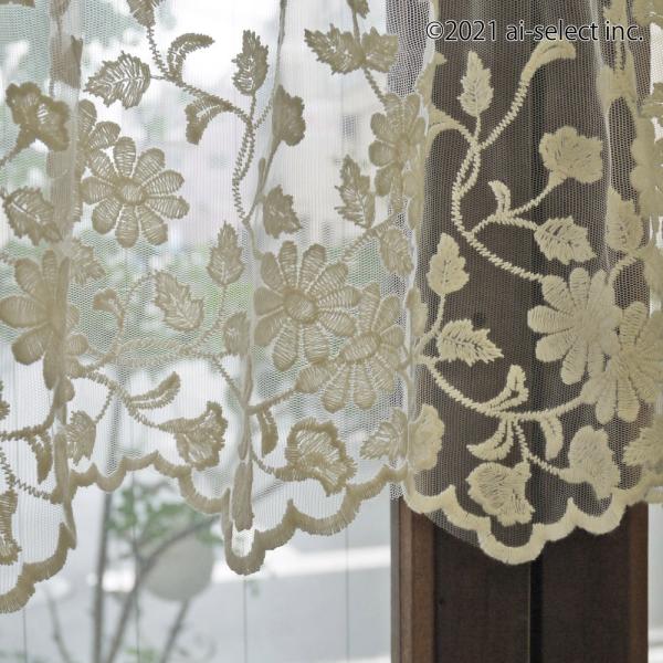 ai カフェカーテン 120×縦30cm ポスト投函で送料無料 コットン刺繍 柔らか チュール が自慢です [cls] コットンフラワー アイボリー 北欧 ベリーショート