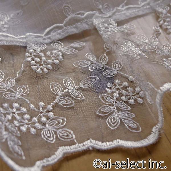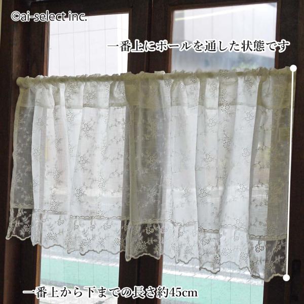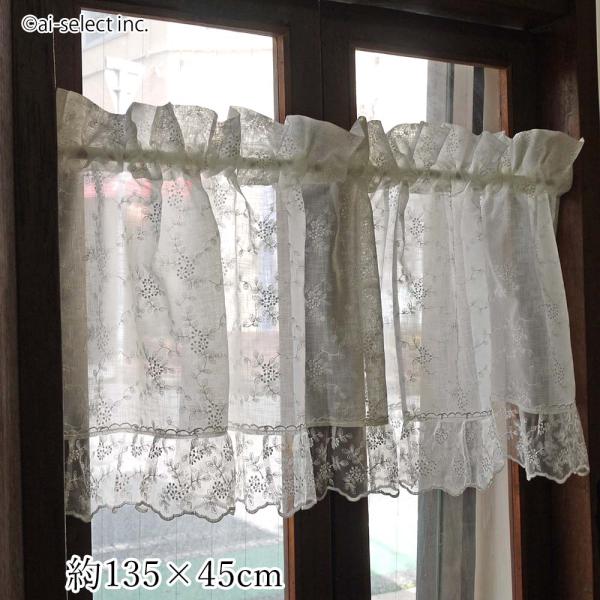 ai カフェカーテン ポスト投函で送料無料 ショート クリスタルオーガンジーフリル 135×縦45cm 刺繍レース ホワイ上品 可愛い おしゃれ 程よい目隠し 洗える