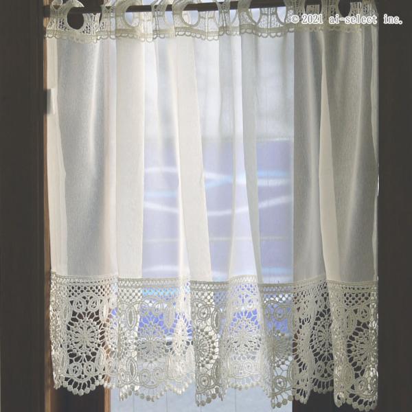 ai レースが綺麗カフェカーテン 100x45cm 細窓 ショート ポスト投函で送料無料 オフホワイトでお部屋に馴染みます 細窓 ショート 小窓用 モデルハウスでも
