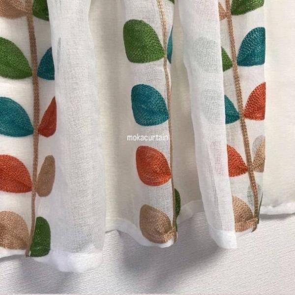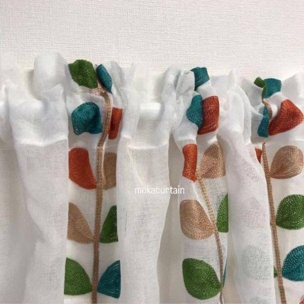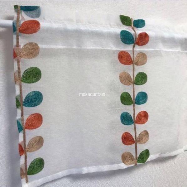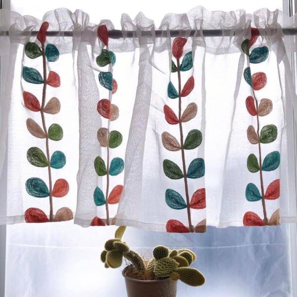 カフェカーテン のれん 小窓 カラフル 葉 インテリア レース カーテン のれん ミラー 突っ張り棒 ポール