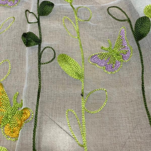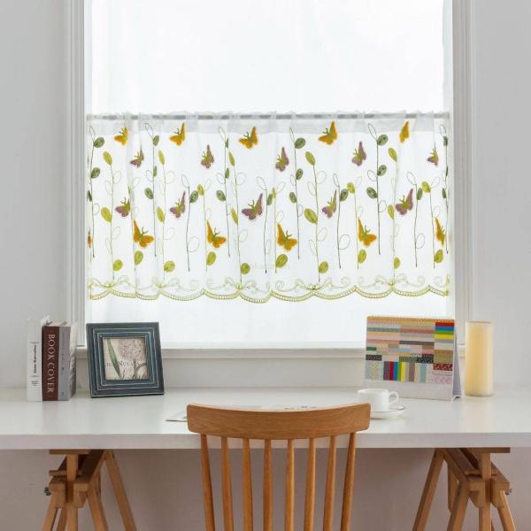 カフェカーテン バタフライ 蝶 幅100cm×丈50cm 刺繍 小窓 突っ張り棒 出窓 スカラップ