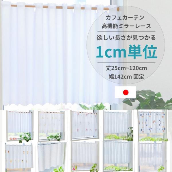 25cmから120cm 1cmきざみ 長さ 選べる 幅142cm カフェカーテン ミラーレース 日本製 高機能 UVカット 遮熱 保温 省エネ 目隠し 昼夜見えにくい