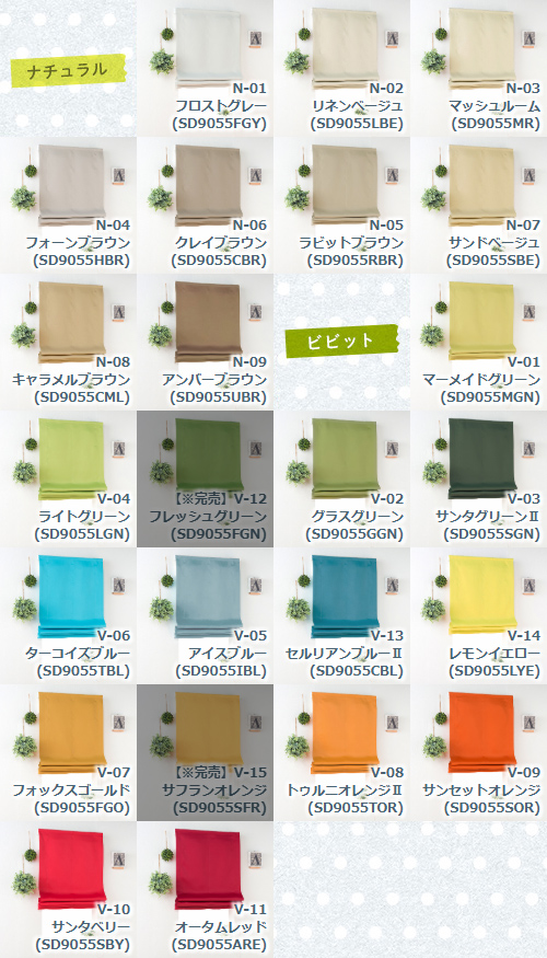 ローマンシェード シングル/遮光率99.99% 選べる48色 無地の防炎1級遮光 ローマンシェード「HAUSKA」ナチュラル・ビビット