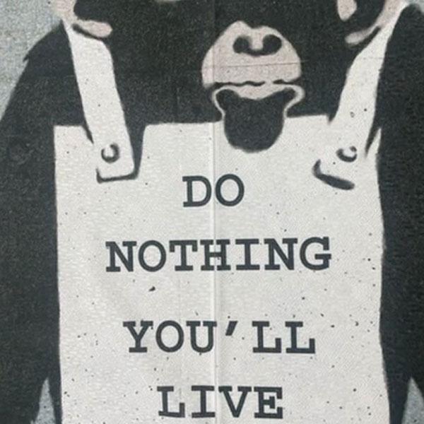 のれん バンクシー おしゃれ 暖簾 間仕切り カーテン 勝手口 BRANDALISED Do Nothing スクリーン ストリートアート 正体不明 省エネ 断熱保温 送料無料 のれん
