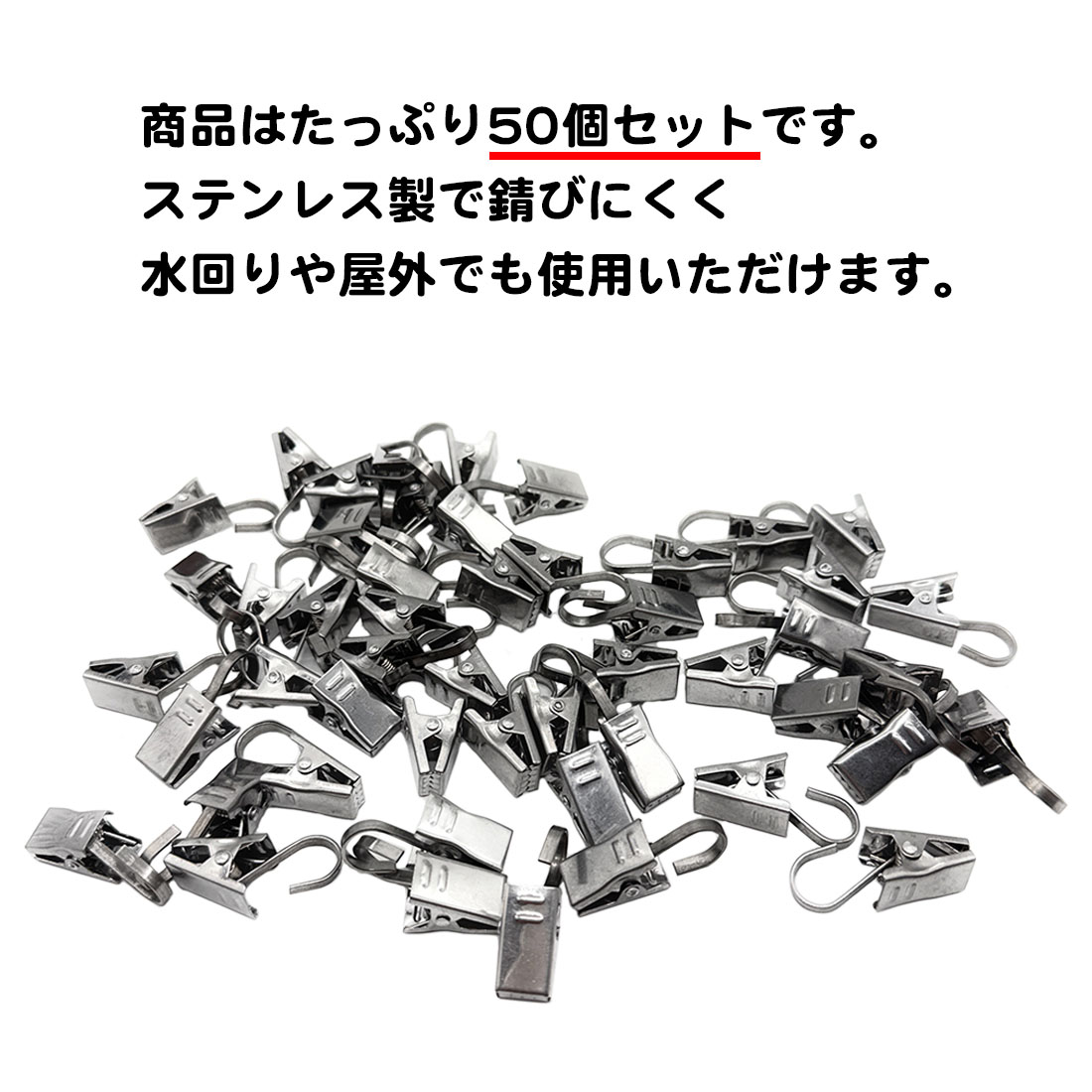 50個セット ステンレス カーテンクリップ フック カーテンピンチ おしゃれ アイアン 錆びない コンパクト 使いやすい 小さい ミニ シルバー 銀 送料無料