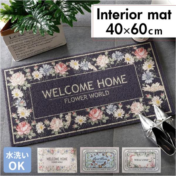玄関マット 60×40cm 花柄 通販 玄関 マット ドアマット エントランスマット 泥除け 泥落とし ウエルカム welcome エントランス 水洗い かわいい 玄関マット