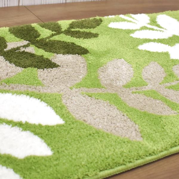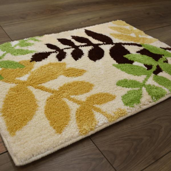 玄関マット 屋内 55×85cm (アリシア) 洗える 北欧 リーフ柄 グリーン ベージュ マット 室内用 風水 滑り止め おしゃれ ふかふか 葉っぱ