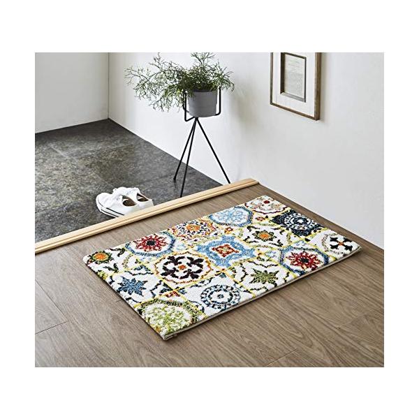イケヒコ 玄関 選べる マット ラグ ウィルトン トルコ ダンテ 約70×120cm アイボリー アラベスク模様 抗菌防臭 消臭機能 へたりにく